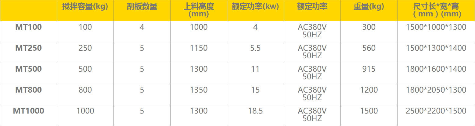 盤式混合機參數(shù)表